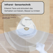 Der Tatzenglück™ Katzen-Trinkbrunnen „FlowSense 2L“ ist die smarte Lösung für Katzenhalter, die Wert auf Gesundheit und Komfort legen. Aus robustem ABS gefertigt, bietet er mit 2 Litern Fassungsvermögen eine kontinuierliche Versorgung mit frischem, gefiltertem Wasser. Der induktive Wasserauslauf startet dank Infrarot-Sensor (Reichweite bis 1 m) nur, wenn sich deine Katze nähert – so bleibt das Wasser länger frisch und Energie wird gespart.