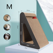 Dank der besonderen Dreiecksform bleibt das Kratzbrett stabil stehen und ist für Katzen aller Größen geeignet. Die durchdachte Konstruktion macht es nicht nur zu einem nützlichen Krallen-Schärfer, sondern auch zu einem modernen Wohnaccessoire, das sich stilvoll in jedes Zuhause einfügt.